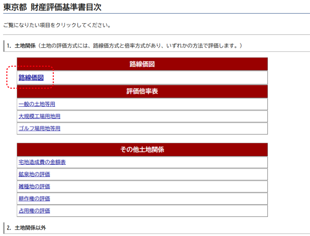 (1) インターネットで、「路線価」と検索し、「財産評価基準書|国税庁 (nta.go.jp)」 へアクセスしてください。