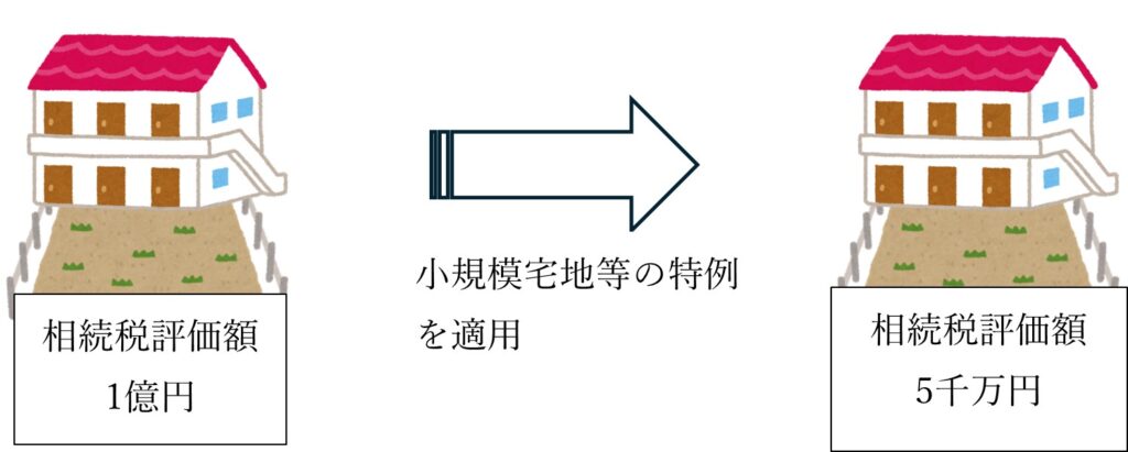 相続税計算上の土地の評価額が50%減額になります。対象は土地だけですので建物には適用されません。