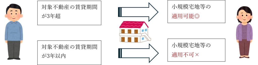 相続開始前3年超の貸付事業の宅地は小規模宅地等の特例の対象となりますが、相続開始前3年以内の新たな貸付事業の宅地は小規模宅地等の特例対象とはなりません。